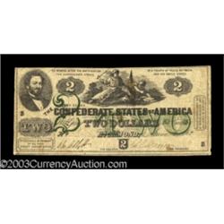 <TABLE cellSpacing=0 cellPadding=0 width="100%" bgColor=#000000 border=0><TBODY> <TR><TD width="100%"><TABLE cellSpacing=1 cellPadding=3 width="100%" border=0><TBODY><TR><TD width="100%" bgColor=#79735c><FONT face=arial color=#ffffff size=3><B>Description</B> </FONT></TD></TR><TR><TD width="100%" bgColor=#ffffff><FONT face=arial size=2><B>T43 $2 1862.</B></I> This type, essentially the same as T42 but with a green overprint, is most commonly found in extremely low grades and becomes a condition rarity when found above the grade of Fine. This example is slightly better, not quite crisp enough to warrant a VF grade, but close and certainly worthy of a premium bid. <B>Fine+++.</B></I> (350-650 ) </FONT></TD></TR></TBODY></TABLE></TD></TR></TBODY></TABLE><BR><TABLE cellSpacing=0 cellPadding=0 width="100%" bgColor=#000000 border=0><TBODY><TR> Important notice: Heritage usually auctions material at the rate of 200-250 lots per hour. On some occasions eBay Live bid software or the Internet may not be able to keep up with the pace of the auction. We recommend placing a realistic absentee bid now as insurance to avoid disappointment. Occasionally the auctioneer may eliminate or reject an eBay Live bid, and the auctioneer may also reopen a lot after the close of the eBay live bidding (usually because we missed an audience bid), and may reject your bid even if it shows you as the winning bidder. By bidding via eBay Live, you agree that Heritage may award the lot to another bidder at its sole discretion under the circumstances described above or any other reasonable circumstances. Also please note that all Heritage lots purchased through eBay Live carry a 20% Buyer's Premium. Please make sure you read the Terms and Conditions before you bid.</TR></TBODY></TABLE>