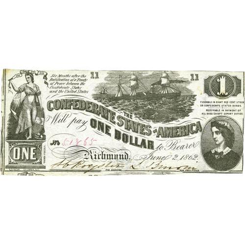 <B>T44 PF-3 $1 1862.</B></I> This <B>Crisp Uncirculated</B></I> note carries a typical cut for this design with slivers of two other notes showing.