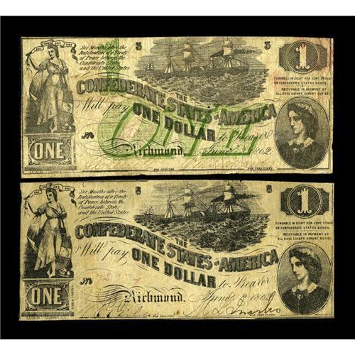 <B>T44/T55 $1 1862.</B></I> This <B>Fine</B></I> pair of Steamship/Lucy Pickens notes have a couple of pinholes to note.<BR><I>From The William A. "Bill" Bond Collection</B></I><BR><BR><b>Shipping:</b> Coin/Currency (<a target="_blank" href="http://www.heritageauctions.com/common/shipping.php">view shipping information</a>)