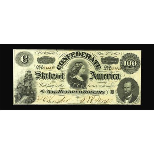<B>T49 PF-1 $100 1862.</B></I> A beautiful <B>Crisp Uncirculated</B></I> C-note with sharp edges and quality wavy line watermarked paper.
