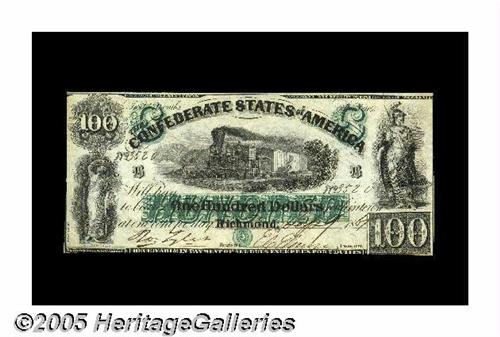 <B>T5 $100 1861.</B></I> A second high-grade example of this much-in-demand type, with this piece trimmed in a bit at the bottom but displaying bright colors and excellent eye appeal. <B>About Uncirculated,</B></I> with just a single light horizontal fold separating it from new.