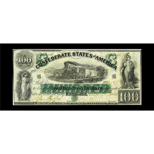 <B>T5 $100 1861.</B></I> Captain Molloy was kept busy during September 1861 as he also disbursed this note in the course of his duties. This lightly handled example is beautiful in all respects with its dark inks, healthy edges and paper. <B>Extremely Fine.</B></I>
