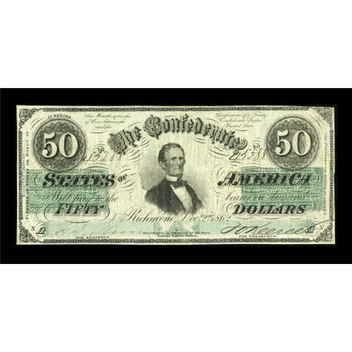 <B>T50 $50 1862 Cr. 360 PF-13.</B></I><BR> This $50 has sound edges that entirely escape the frame line. The color is nice and the handling is even. <B>Very Fine.</B></I><BR><BR><b>Shipping:</b> Coins & Currency (<a target="_blank" href="http://www.heritageauctions.com/common/shipping.php">view shipping information</a>)