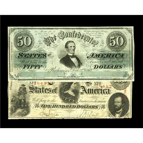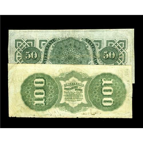 <B>T50 $50 1862 Fine-VF, CC</B></I><BR><B>T56 $100 1862 Fine.</B></I><BR>The Lucy Pickens C-note displays an approximate half inch left edge tear plus other minor edge abrasions.<BR>