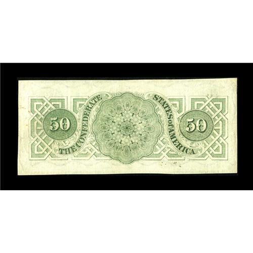 <B>T50 $50 1862.</B></I> This $50 has sound edges that almost entirely escape the frame line. The color is nice and the handling is even. Two small possible rust circles are found along the right edge. <B>Fine-Very Fine.</B></I><BR><BR><b>Shipping:</b> Coins & Currency (<a target="_blank" href="http://www.heritageauctions.com/common/shipping.php">view shipping information</a>)