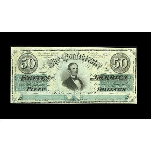 <B>T50 $50 1862.</B></I> A high grade example with good color and a very nice appearance. <B>Very Fine-Extremely Fine.</B></I>