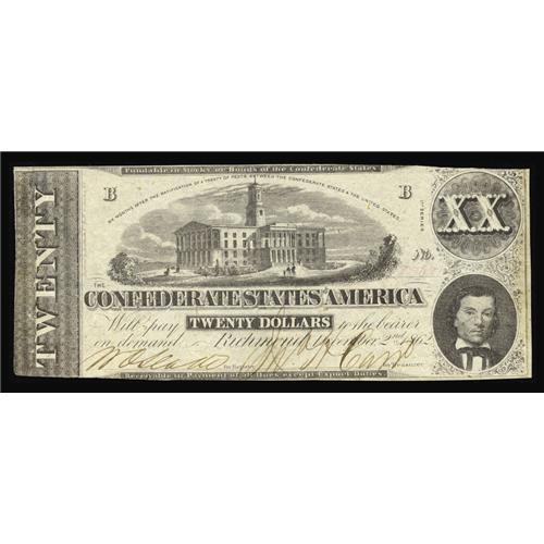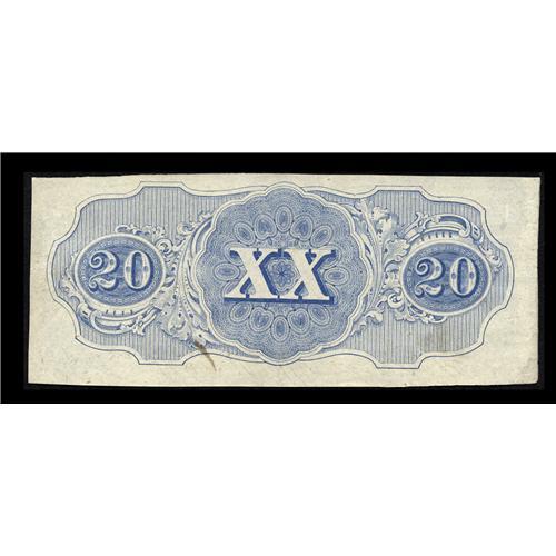 <B>T51 $20 1862.</B></I> This example exhibits a repair at the left margin as there was a paper skin near the "Twenty". There will be no returns on this lot for any reason. <B>About Uncirculated.</B></I>