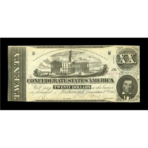 <B>T51 PF-11 $20 1862.</B></I> We've had very few high grade examples of this design over the years. Only a close cut keeps this note from a higher grade. <B>Crisp Uncirculated.</B></I><BR><BR><b>Shipping:</b> Coin/Currency (<a target="_blank" href="http://www.heritageauctions.com/common/shipping.php">view shipping information</a>) <BR><BR><B>Important n