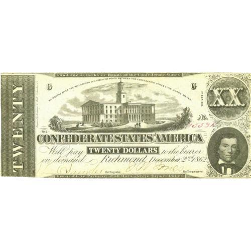 <B>T51 PF-11 $20 1862.</B></I> We've had very few high grade examples of this design over the years. Only a close cut keeps this note from a higher grade. <B>Crisp Uncirculated.</B></I>