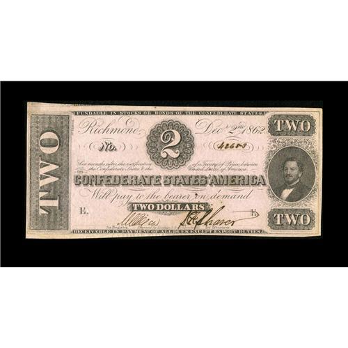 <B>T54 $2 1862.</B></I> A full frame line is noticed on this <B>About Uncirculated</B></I> example.<BR><BR><b>Shipping:</b> Coin/Currency (<a target="_blank" href="http://www.heritageauctions.com/common/shipping.php">view shipping information</a>)