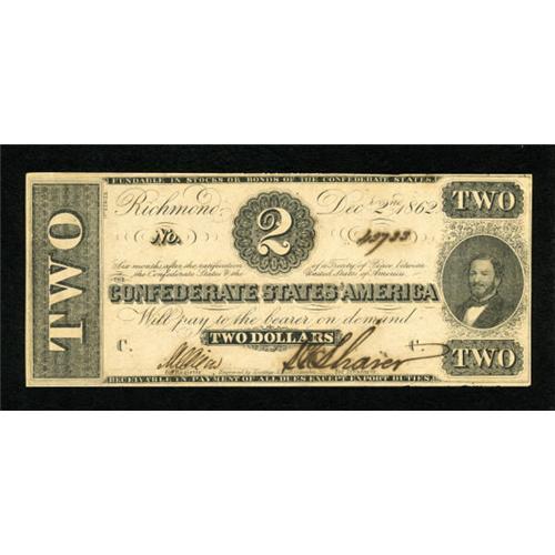 <B>T54 $2 1862.</B></I><BR> This Deuce is fully framed. <B>Choice Crisp Uncirculated.</B></I><BR><BR><b>Shipping:</b> Coins & Currency (<a target="_blank" href="http://www.heritageauctions.com/common/shipping.php">view shipping information</a>)