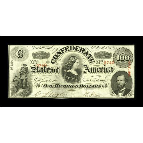 <B>T56 $100 1863.</B></I> A simply gorgeous Lucy Pickens, with a full frame line and nice centering on both sides. <B>Choice Crisp Uncirculated.</B></I><BR><BR><b>Shipping:</b> Coin/Currency (<a target="_blank" href="http://www.heritageauctions.com/common/shipping.php">view shipping information</a>) <BR><BR><B>Important not