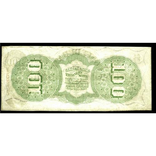 T56 $100 1863. Light folds are uncovered after much scr T56 $100 1863.