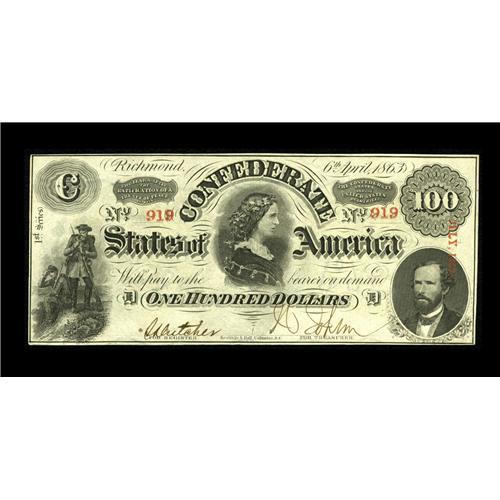 T56 $100 1863. Serial number embossing is observed on t
