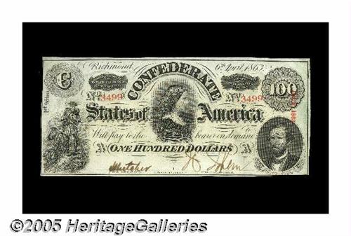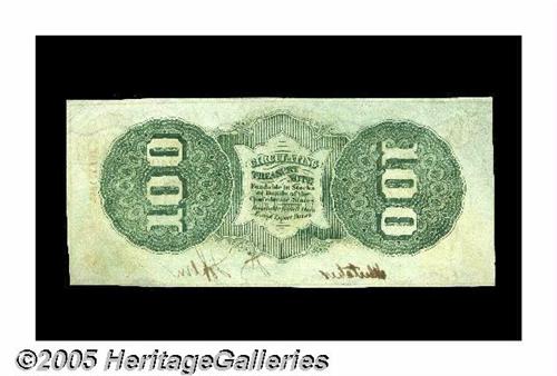 <B>T56 $100 1863.</B></I> This is a delightful example of this C-note that has nice colors and brown-inked signatures. <B>Choice Crisp Uncirculated.</B></I>