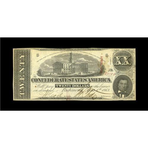 T58 $20 1863. Unc at first glance and then faint handli
