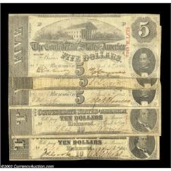 T59 $10 1863 (2), T60 $5 1863 (3). Five pieces, three Very Good-Fine, one Very Fine, and one Extreme