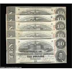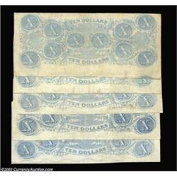T59 $10 1863. A group of five notes, all cut cancelled, and ranging in grade from Very Fine to Extremely Fine. 5 notes Important notice: Heritage usually auctions material at the rate of 200-250 lots per hour. On some occasions eBay Live bid software or the Internet may not be able to keep up with the pace of the auction. We recommend placing a realistic absentee bid now as insurance to avoid disappointment. Occasionally the auctioneer may eliminate or reject an eBay Live bid, and the auctioneer may also reopen a lot after the close of the eBay live bidding (usually because we missed an audience bid), and may reject your bid even if it shows you as the winning bidder. By bidding via eBay Live, you agree that Heritage may award the lot to another bidder at its sole discretion under the circumstances described above or any other reasonable circumstances. Also please note that all Heritage lots purchased through eBay Live carry a 20% Buyer's Premium. Please make sure you read the Terms and Conditions before you bid.