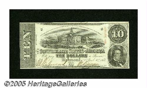 <B>T59 $10 1863.</B></I> Sharp corners decorate this well-preserved 2nd Series $10. <B>Choice Crisp Uncirculated.</B></I>
