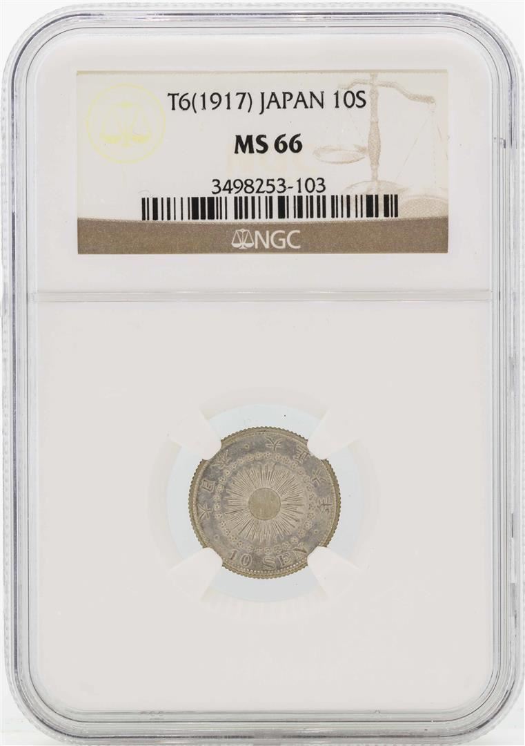 One T6(1917) Japan 10 Sen Silver Coin NGC MS66. NGC Certified.