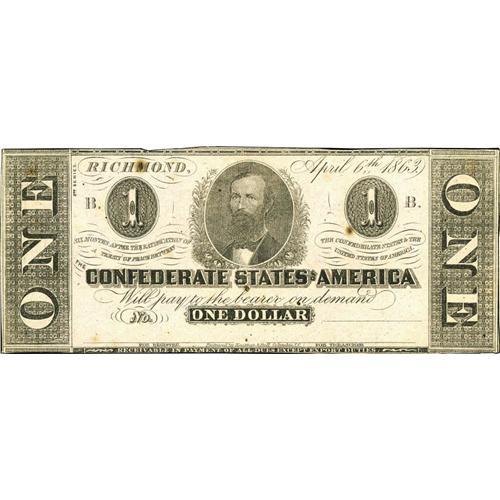 <B>T62 $1 1863.</B></I> This is an unusual note as it has neither been signed nor dated. A few small rust spots are noticed along with a pencilled Criswell number on the back. <B>Crisp Uncirculated.</B></I>