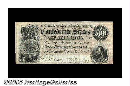 <B>T64 $500 1864.</B></I> Delightful paper is found on this $500 with signatures of (Miss) L.(W.) Elliot and (Miss E.) A. Baker. <B>Choice Crisp Uncirculated.</B></I>