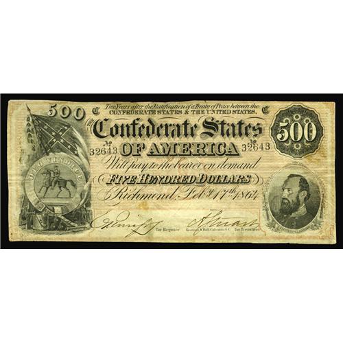 T64 $500 1864. The fragile paper has yielded a handful T64 $500 1864.