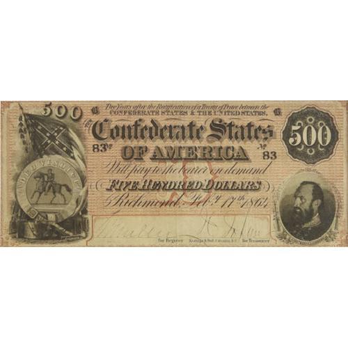 <B>T64 $500 1864.</B></I><BR> This $500 with serial number 83-B is professionally framed and matted under glass. The approximate dimensions are 13.5 by 10 inches. The note has not been inspected out of its framing, but appears to be <B>Very Fine. </B></I><I>There will be no returns on this lot for any reason.</B></I><BR><BR><b>Shipping:</b> Coins & Currency (<a target="_blank" href="http://www.heritageauctions.com/common/shipping.php">view shipping information</a>)