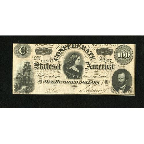 <B>T65 $100 1864.</B></I> Original surfaces and robust edges adorn this C-note.<BR><BR><b>Shipping:</b> Coins & Currency (<a target="_blank" href="http://www.heritageauctions.com/common/shipping.php">view shipping information</a>)