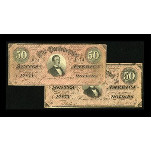 T66 $50 1864.Two Examples. Here is a pair of notes of w T66 $50 1864.Two Examples.