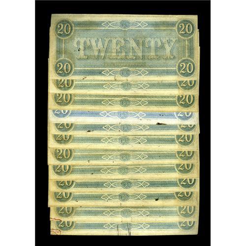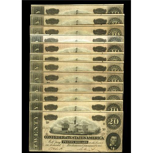 <B>T67 $20 1864.</B></I> In this incredible Confederate market 1864 issues are finally gaining the popularity they once lacked. This group however exceeds those most often seen as there are twelve pieces that range in quality from <B>Choice Uncirculated to Gem.</B></I>