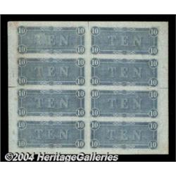 T68 $10 1864 Uncut Sheet of Eight. The first of three uncut sheets, all lacking serial numbers. These are always popular, and are especially suitable for framing and display. <BR><BR><B>Important notice:</B> Heritage usually auctions material at the rate of 200-250 lots per hour. On some occasions eBay Live bid software or the Internet may not be able to keep up with the pace of the auction. We recommend placing a realistic absentee bid now as insurance to avoid disappointment. Occasionally the auctioneer may eliminate or reject an eBay Live bid, and the auctioneer may also reopen a lot after the close of the eBay live bidding (usually because we missed an audience bid), and may reject your bid even if it shows you as the winning bidder. By bidding via eBay Live, you agree that Heritage may award the lot to another bidder at its sole discretion under the circumstances described above or any other reasonable circumstances. Since eBay bids are not shown to us until we open the lot on the floor, we treat those bids just like floor bids. In most cases the floor responds before the eBay bid is presented to us, due to Internet lag time, so for consistency we have made it a policy that floor bids are always considered first over tie eBay live bids. Also please note that all Heritage lots purchased through eBay Live carry a 20% Buyer's Premium. Please make sure you read the Terms and Conditions before you bid. <BR><BR><B>IMPORTANT ANNOUNCEMENT ABOUT RESERVES:</B> Heritage now divulges all reserves on its web site 7 days before every auction. If you want to know whether the reserve on this lot has been met, and if not, what the reserve amount is, please visit this lot page on the HeritageCoin.com web site, or email: bid@HeritageGalleries.com