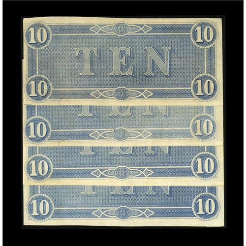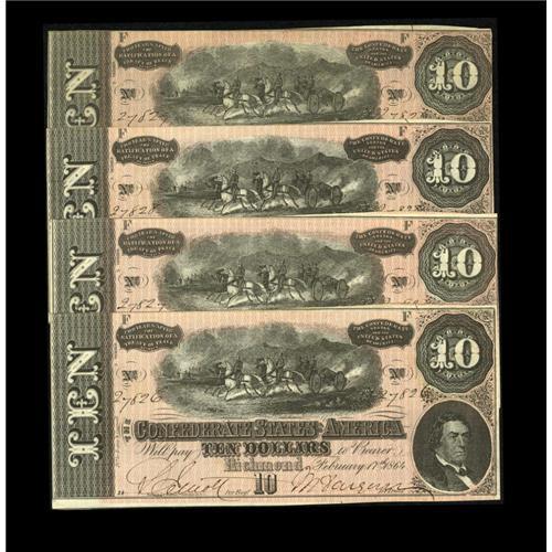<B>T68 PF-21 $10 1864. Four Examples.</B></I> Each note is consecutively numbered and carries plate letter F. <B>Crisp Uncirculated.</B></I>