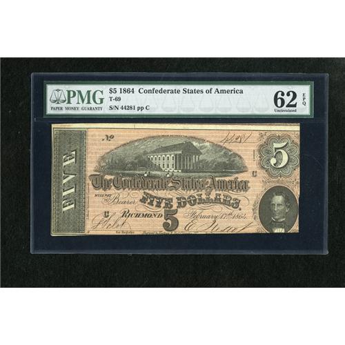 T69 $5 1864. Yet another $5 Memminger graded PMG