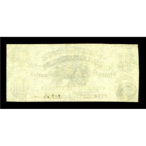 <B>T7 $100 1861.</B></I> A touch of handling at each end accounts for the grade of <B>About Uncirculated.</B></I> The note is solid and most pleasing and most importantly, it has not been cancelled. At center is a vignette featuring Ceres and Proserpina in flight. Only about 37,000 notes were originally issued between July 29, 1861 and October 22, 1861.<BR><I>From The George P. Hammerly Collection</B></I><BR><BR><b>Shipping:</b> Coin/Currency (<a target="_blank" href="http://www.heritageauctions.com/common/shipping.php">view shipping information</a>)