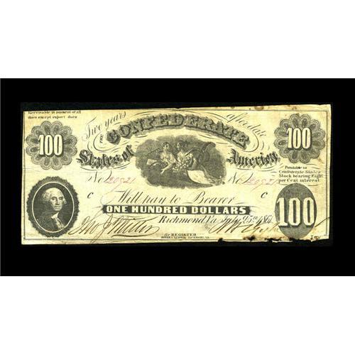 T7 $100 1861. Even circulation is found on this C-note T7 $100 1861.