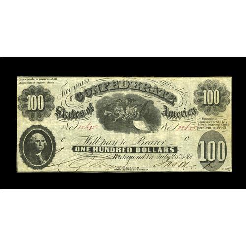 <B>T7 $100 1861.</B></I> This is a scarce note in a nice collector grade, with this example being free of edge tears. <B>Fine+.</B></I> <BR><BR><B>Important