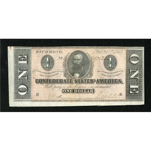 <B>T71 $1 1864.</B></I> Two overly large margins are found on this $1 that was once mounted with two stamp hinges. <B>About Uncirculated.</B></I><BR><BR><b>Shipping:</b> Coins & Currency (<a target="_blank" href="http://www.heritageauctions.com/common/shipping.php">view shipping information</a>)