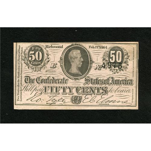 <B>T72 50 Cents 1864.</B></I> A hint of handling is noticed on this fully original issue. This 2nd Series issue is scarcer than the 1st. <B>Choice Crisp Uncirculated.</B></I><BR><BR><b>Shipping:</b> Coins & Currency (<a target="_blank" href="http://www.heritageauctions.com/common/shipping.php">view shipping information</a>)