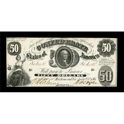 <B>T8 $50 1861.</B></I> Cr 18 PF-4<BR> This wonderful <B>Choice About Uncirculated </B></I>note is very bright with deep inks and a corner fold. A few hinge marks on the back are no detriment to the overall eye appeal.<BR><BR><b>Shipping:</b> Coins & Currency (<a target="_blank" href="http://www.heritageauctions.com/common/shipping.php">view shipping information</a>)