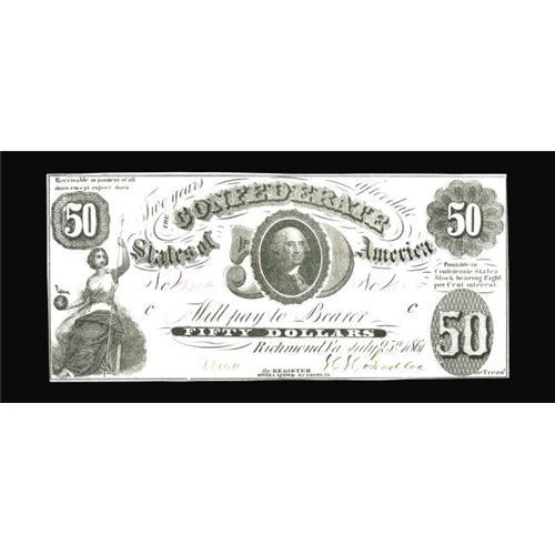 <B>T8 PF-7 $50 1861.</B></I> Stark white paper is a hallmark of this $50 that escaped circulation. This very scarce Fricke number had only 6,200 printed. <B>Choice Crisp Uncirculated.</B></I>