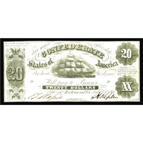 <B>T9 $20 1861.</B></I> One non-intrusive pinhole is seen on this note that is quite crisp and pleasing. <B>Very Fine.</B></I>