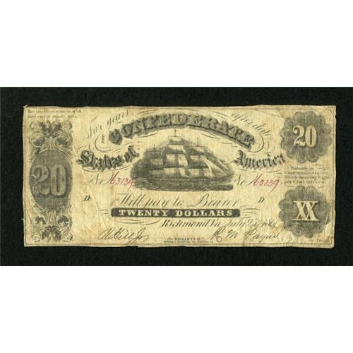 <B>T9 $20 1861.</B></I><BR> This Very Good note has a a pinhole or two with some minor margin tears. <B>Very Good.</B></I><BR><BR><b>Shipping:</b> Coins & Currency (<a target="_blank" href="http://www.heritageauctions.com/common/shipping.php">view shipping information</a>)<BR><BR><B>I