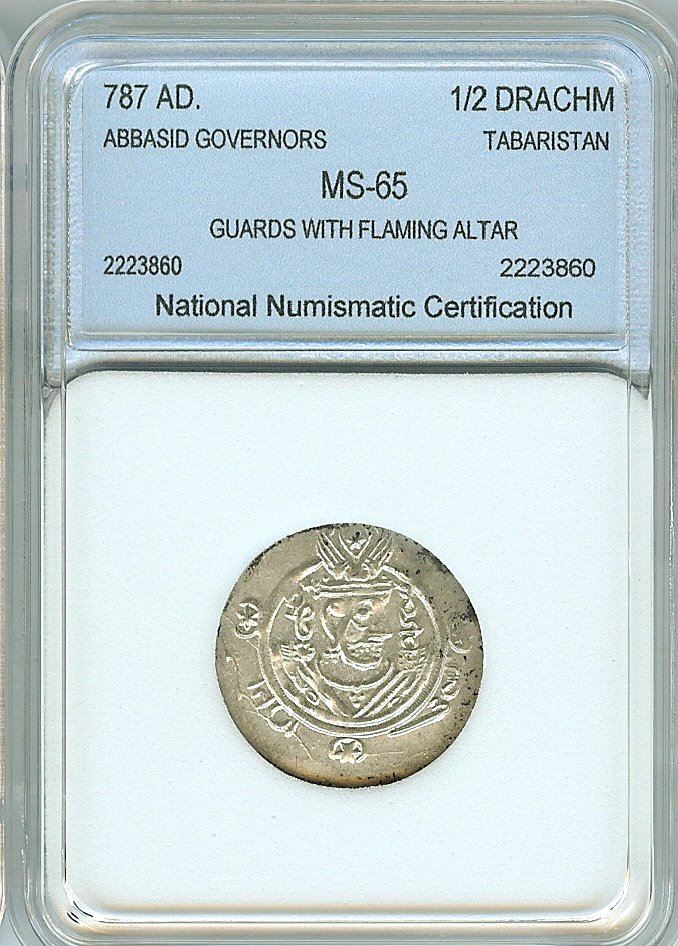 TABARISTAN 787 A.D. SILVER 1/2 DRACHM -ABBASID GOVERNORS- NNC MS-65