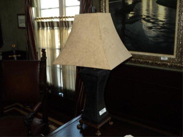 TABLE LAMP, LEATHER W/ CLAW FEET {print sequence:} 101