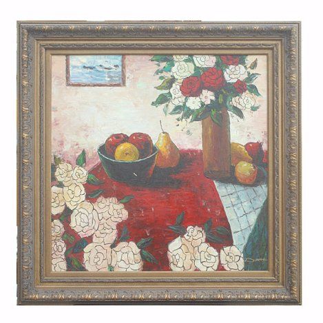"TABLE OF FLOWERS" - ORIGINAL HAND PAINTED OIL ON CANVAS - PROFESSIONALLY FRAMED - IMAGE 30x 30" - FRAMED 38x 38"