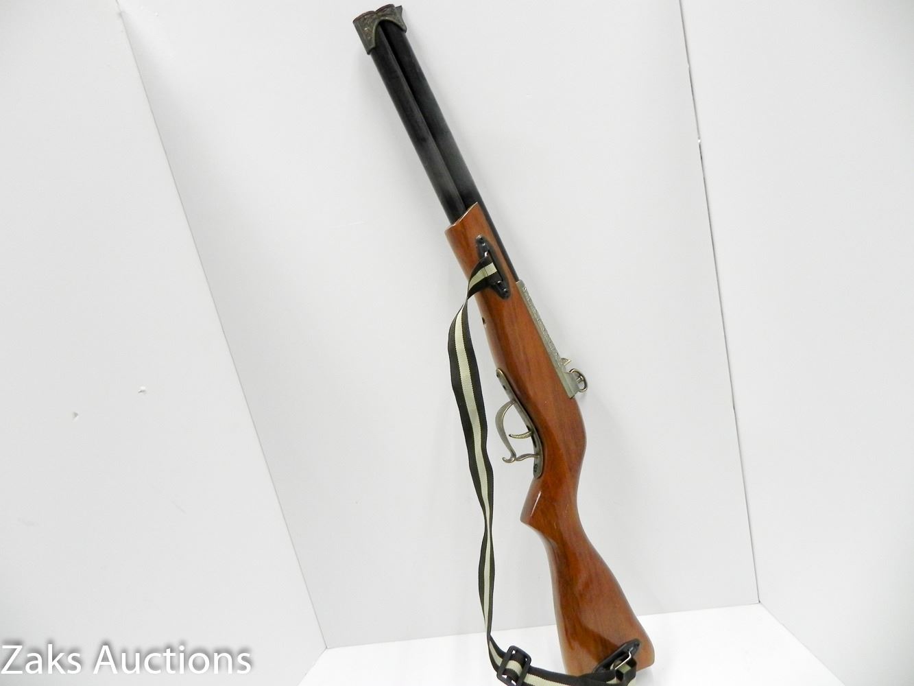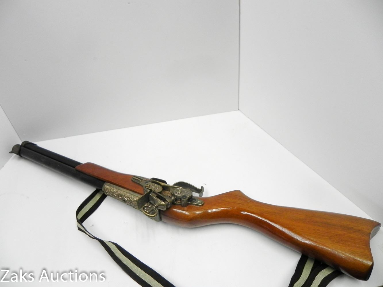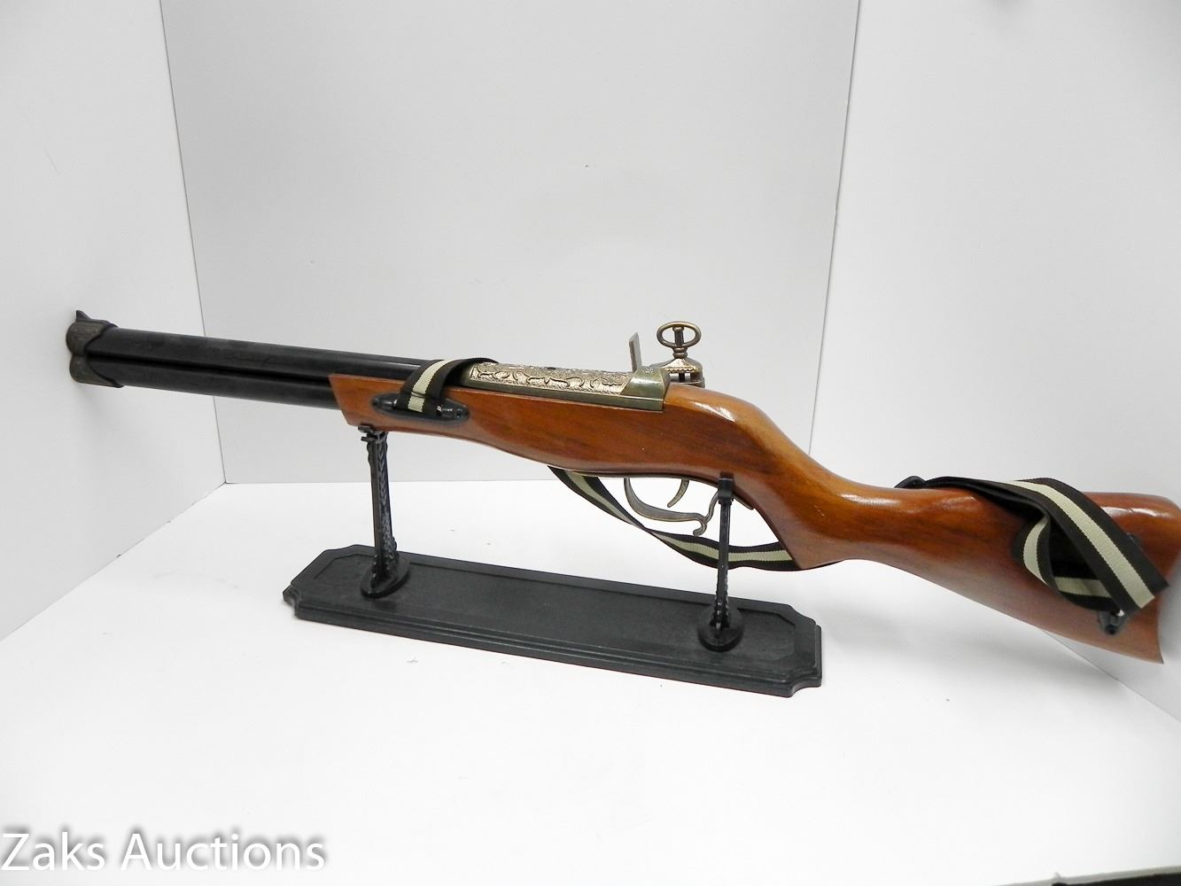 TABLE OR MANTEL TOP REPLICA GUN WITH STAND AND STRAP. 26 INCHES