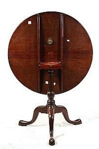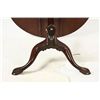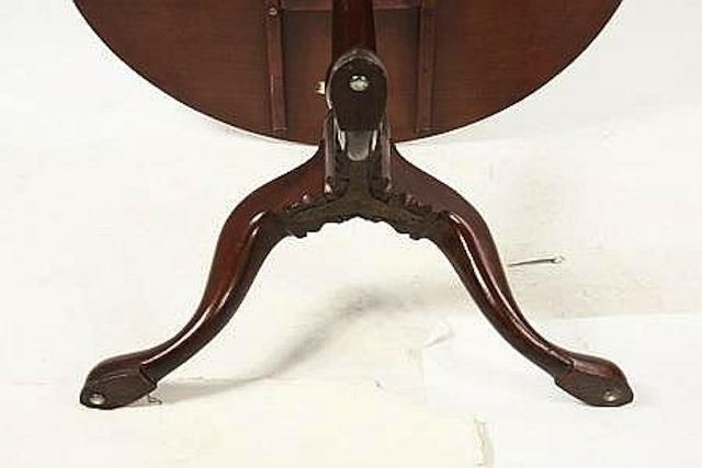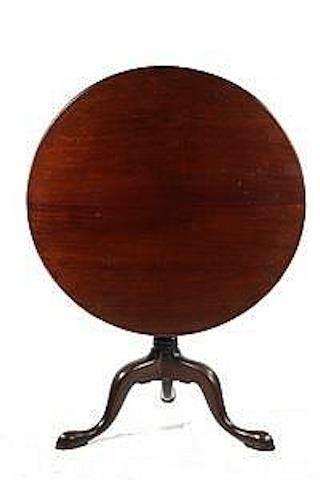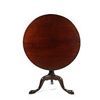 TABLE - Second half 18th c. Cuban mahogany tip-top tea table with two board top, well proportioned turned pedestal, raised on three arch curved and carved legs ending in slipper feet. School of Joseph Short, Newburyport, MA. 27" high, 32" diam top, g