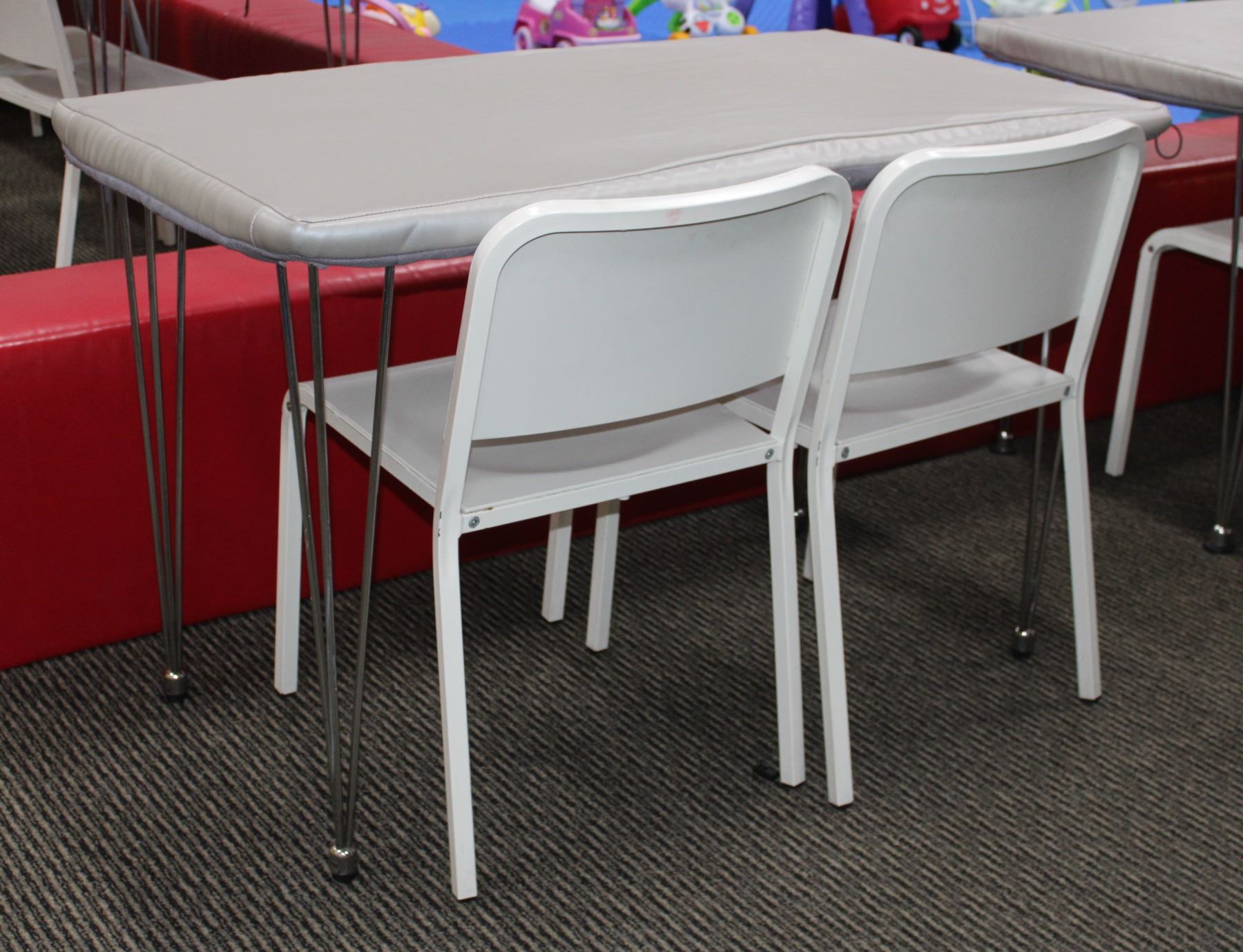 TABLE WITH VINYL CLOTH AND 2 CHAIRS 48"X 30" X 36"