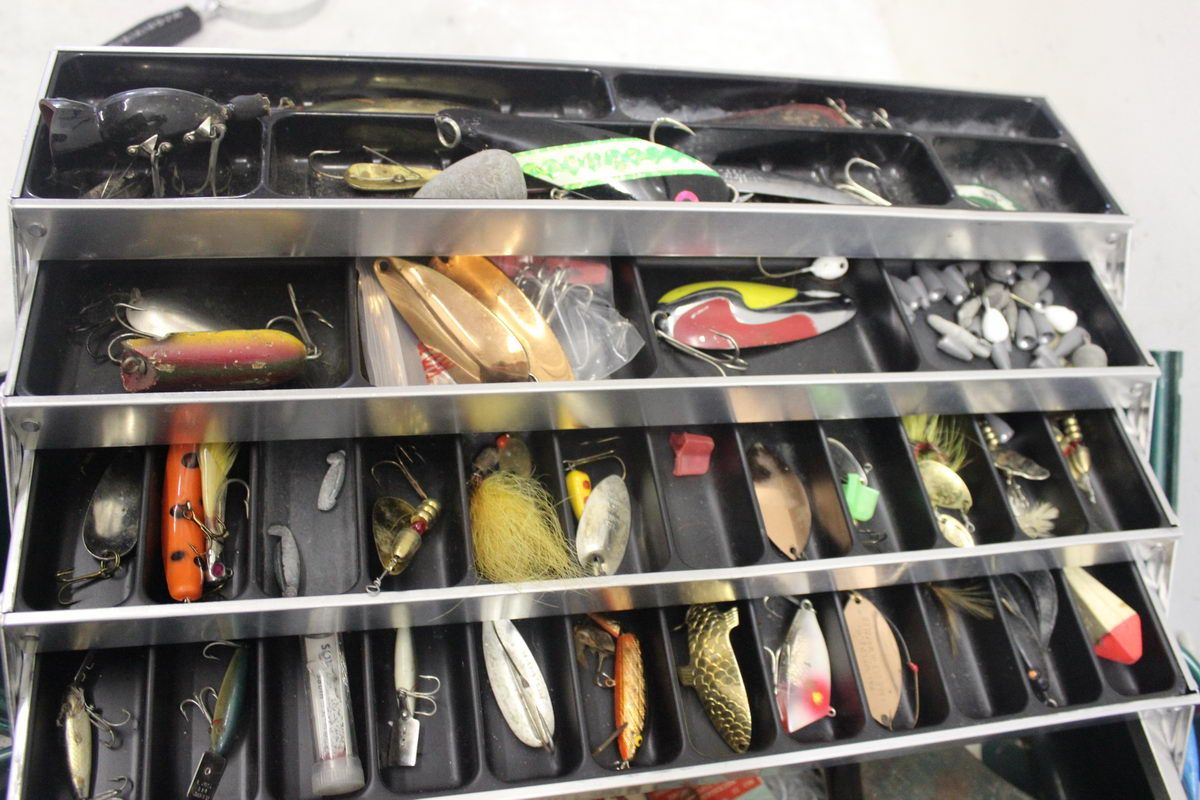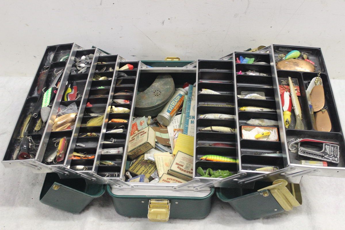 TACKEL BOX COMPLETELY FULL OF LURES AND MIXED FISHING EQUIPMENT MASSIVE AMOUNT